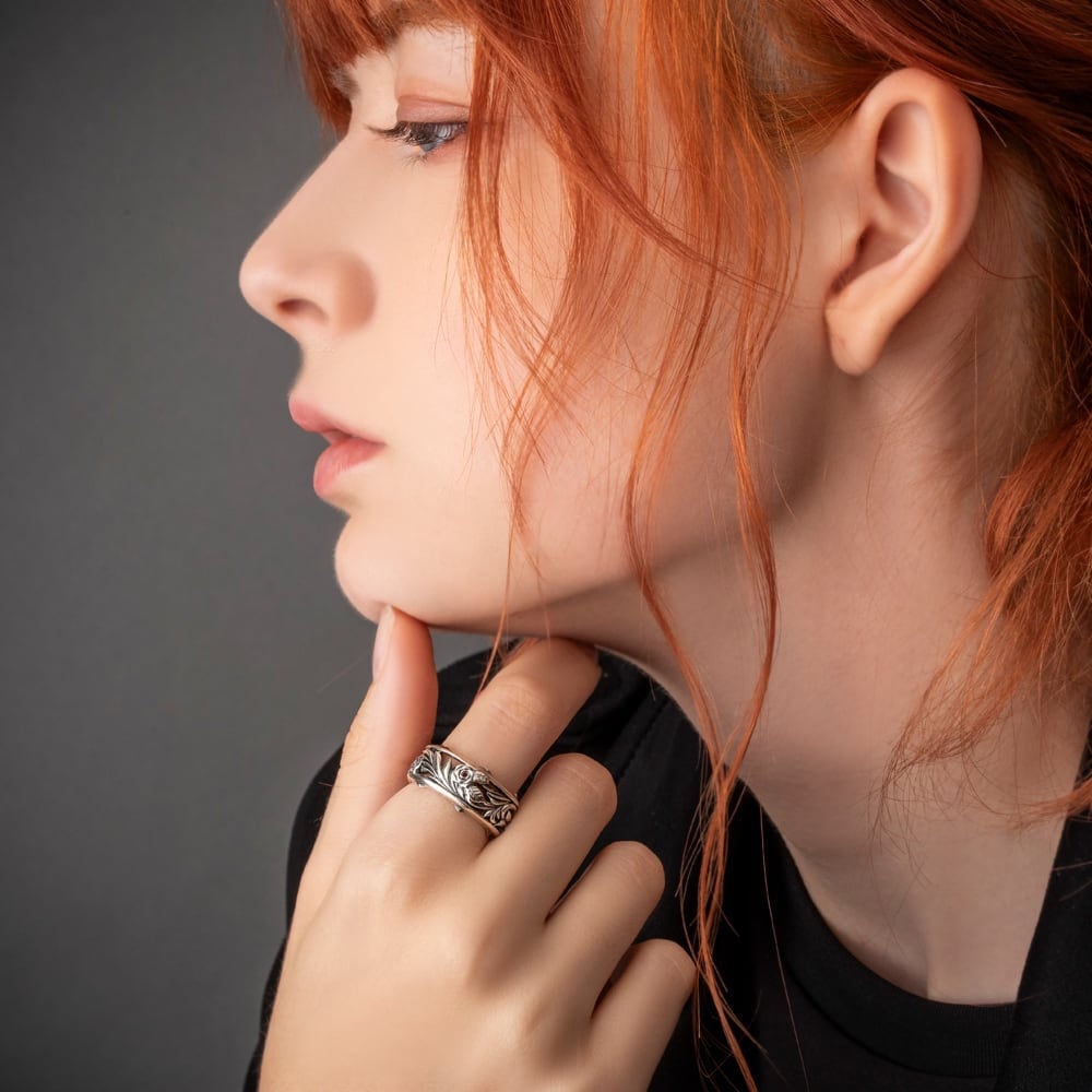 Wear the rose—an auspicious motif associated with love and beauty—on your fingertips. With balanced volume that blends effortlessly into any outfit, it transitions from daily wear to dress-up with ease. Adjustable from size 9 and up, it is also recommended as a pair ring. A modern art piece designed to stay with you for years to come.