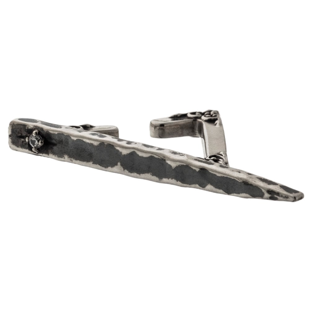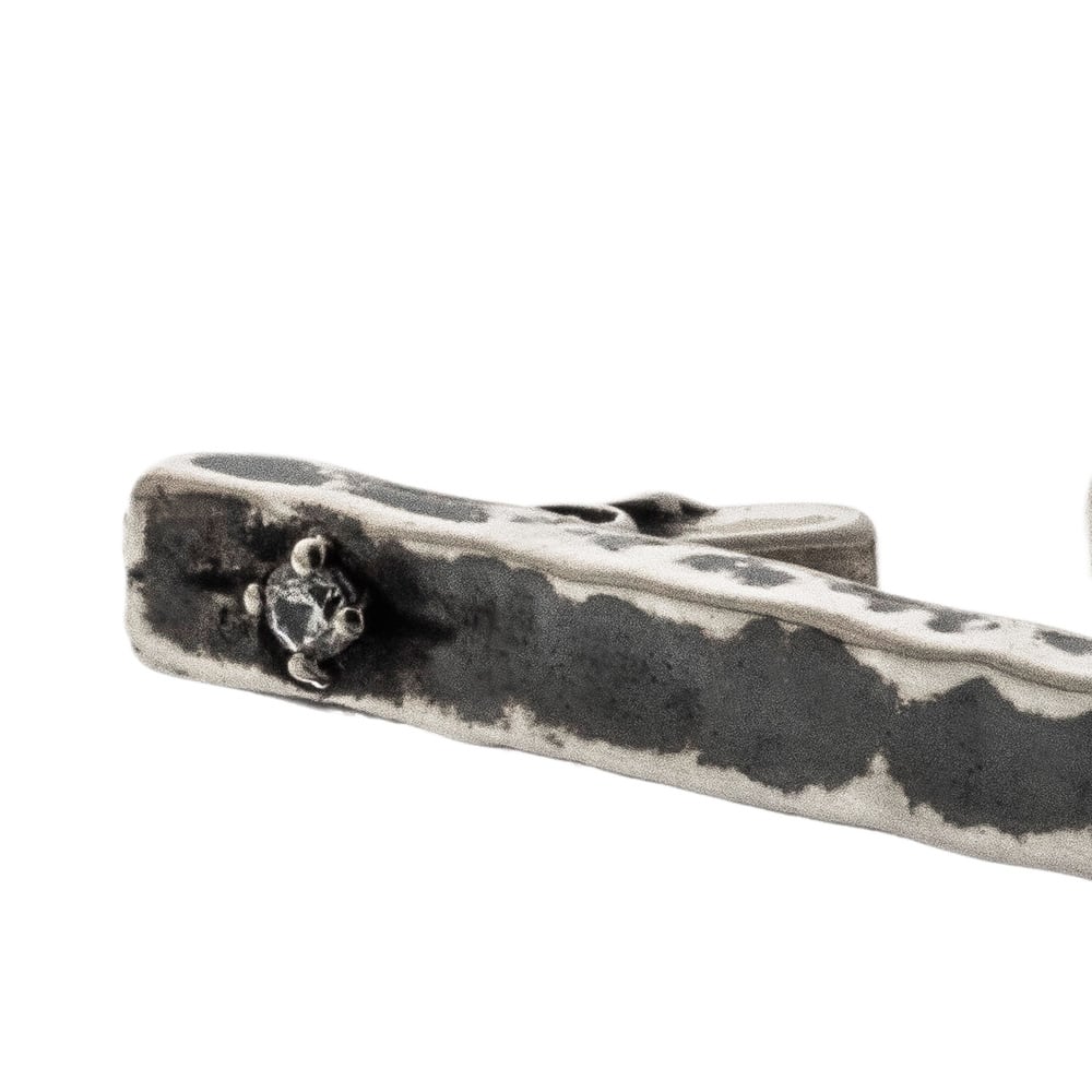 一辺が長い三角のイヤーカフは、モードでシャープな印象。ピアスのようにホールをあける必要もなく、耳に挟むだけで簡単に装着できます。イヤリングよりも手軽なアイテム。いくつも重ねづけしてもいいし、1個だけでも決まります。石はCZクリアー。