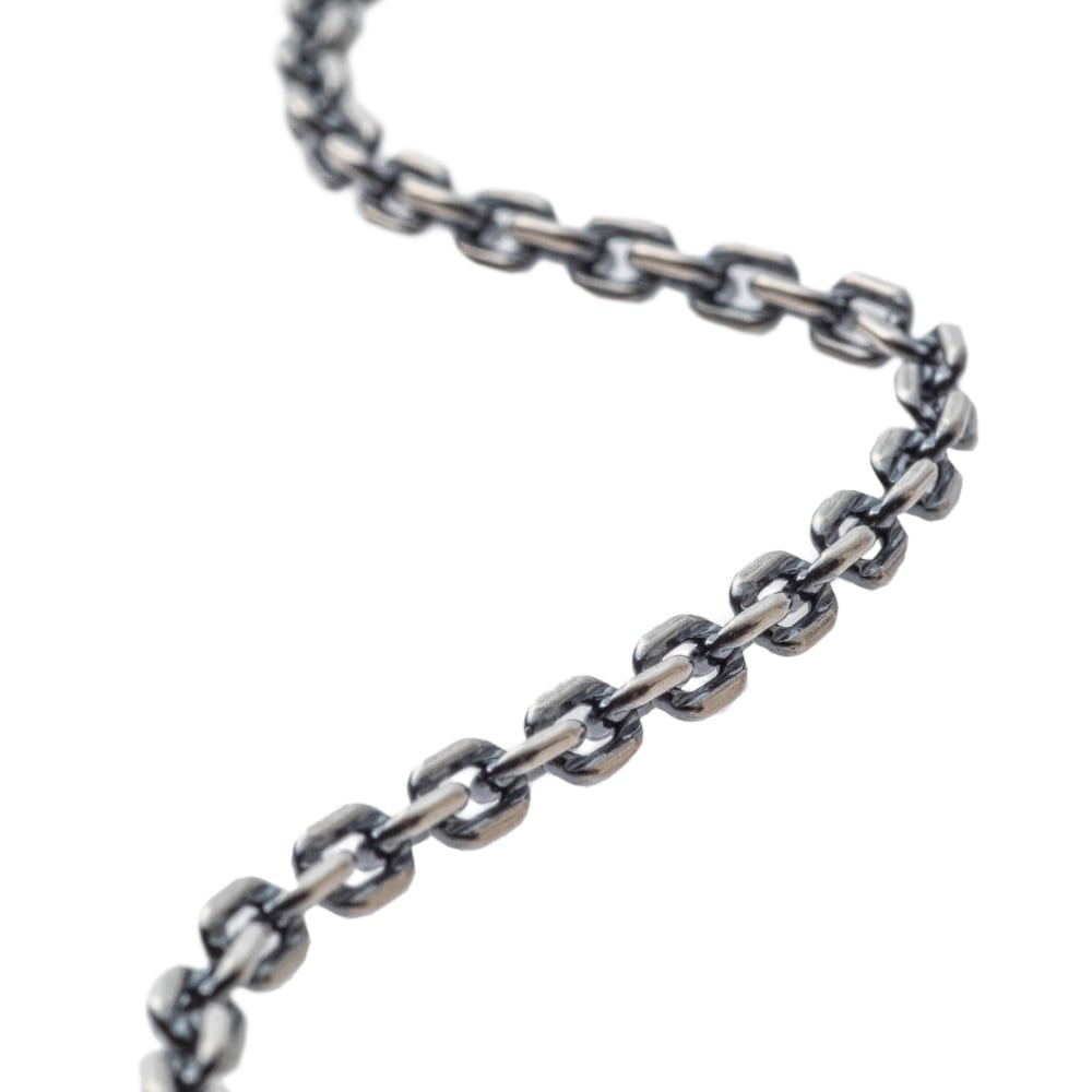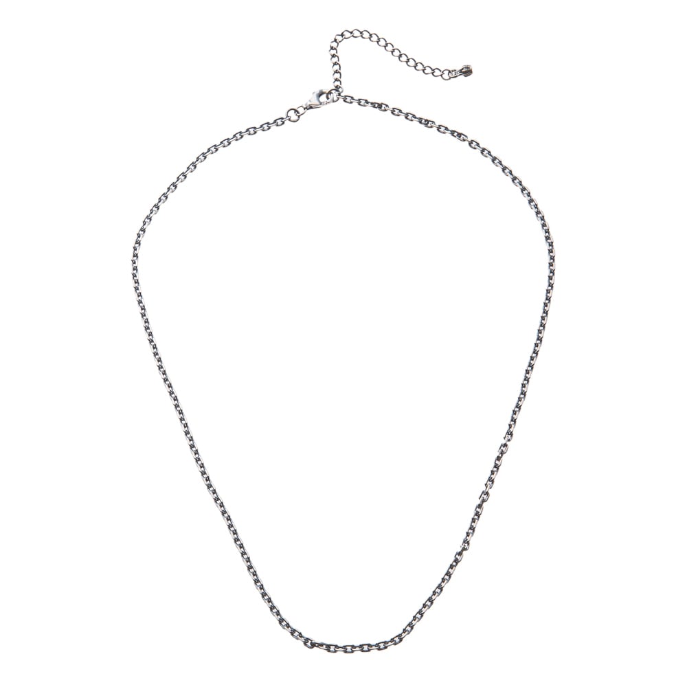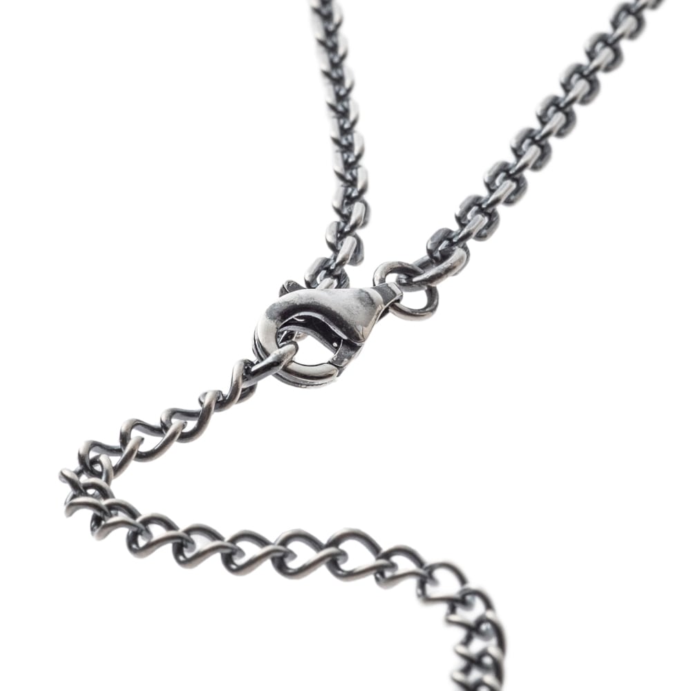 キングスのペンダントやチャームに合わせる純正ネックレス。燻し加工された925シルバー製。2.5mm幅の4面カットアズキチェーン。全長45cm。アジャスターが5cmついており40cmから45cmまで調節が可能。エンドチップはシルバー製のクラウンデザインでAKと925刻印入り。